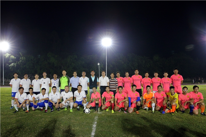 李靖宣布公司與黃埠鎮(zhèn)政府足球友誼賽開賽并為比賽開球。雙方在煥然一新的燈光球場進行了第一場友誼比賽。
